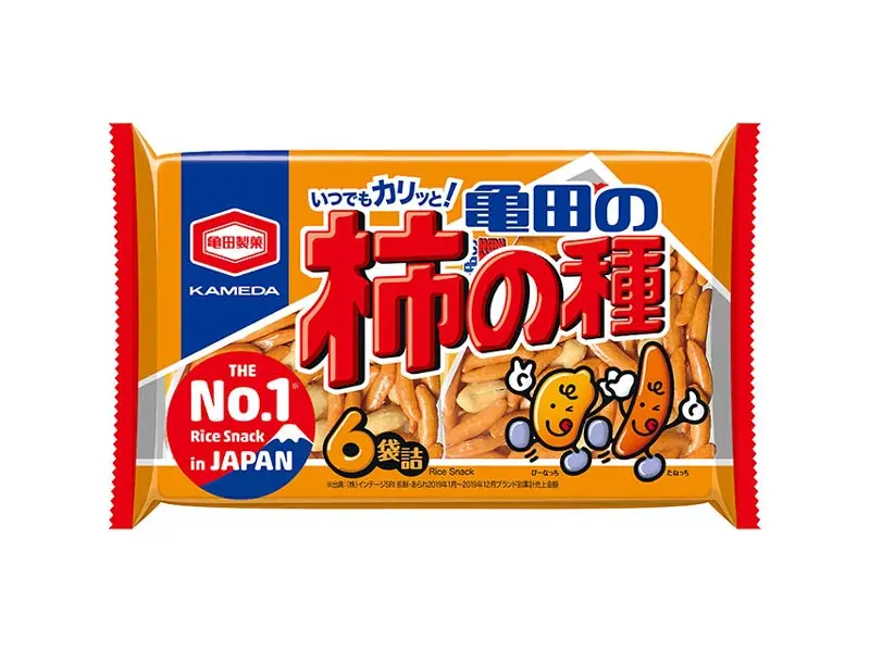 Kaki-no-Tane is a popular snack featuring spicy, persimmon seed-shaped rice crackers mixed with peanuts, making it an excellent choice for beer. The snack comes in individually-packed servings, making for a perfect souvenir as well.