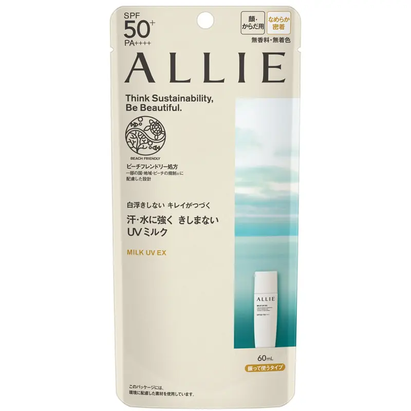 Allie, a brand born in 2009, has consistently prioritized high sun protection with SPF50+ and PA++++. It has evolved by introducing features like friction resistance and extreme waterproofing. In 2022, the brand underwent a major revamp, adopting minimalist, eco-friendly packaging and an ocean-friendly formula while maintaining its powerful functionality, reflecting its commitment to environmental protection.